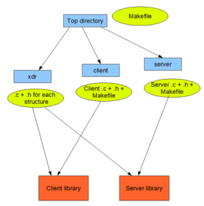 - server – a .c & .h is generated in this directory. They contain the definition and declaration respectively of the server stub and the server function for each EO service defined in the It also contains a make file that generates a library out of the files in this directory and the xdr directory.