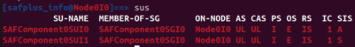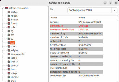 • sus: Inspect detailed states for some given SU (Service Unit). This command reports administrative state, presence state, readiness state, and similar attributes.
